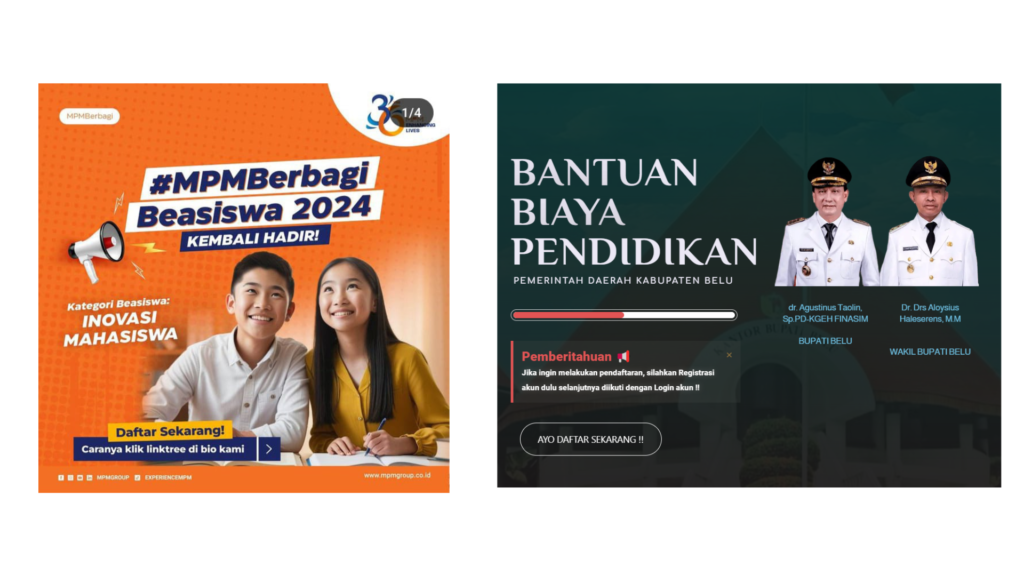 2. Pemerintah Kabupaten Belu Memberikan Bantuan Biaya Pendidikan Bagi Mahasiswa Berprestasi dan Kurang Mampu yang berasal dari Kabupaten Belu.. Untuk informasi lebih lengkap bisa mengakses Website : https://kesra.belukab.go.id/