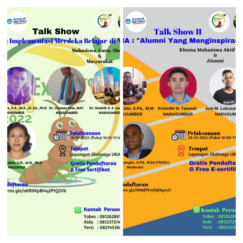Pada Kegiatan BioExpo III 2022 (27 – 29 Oktober 2022) salah satu Acara yang dilaksanakan adalah Talkshow. Talkshow ini dilakukan 2 kali dengan tema: