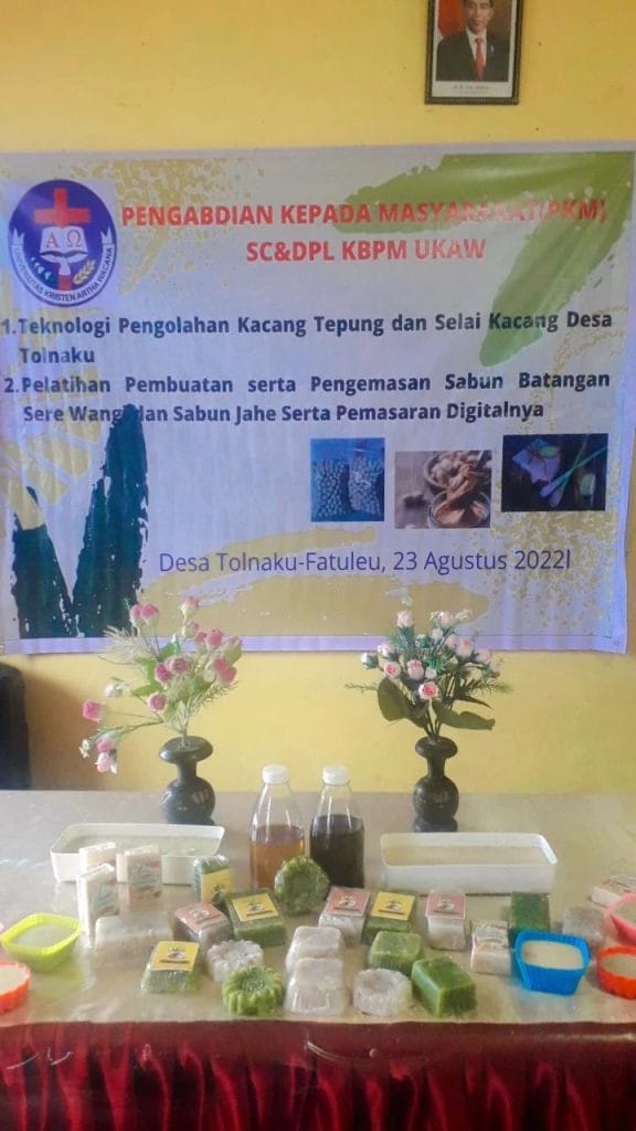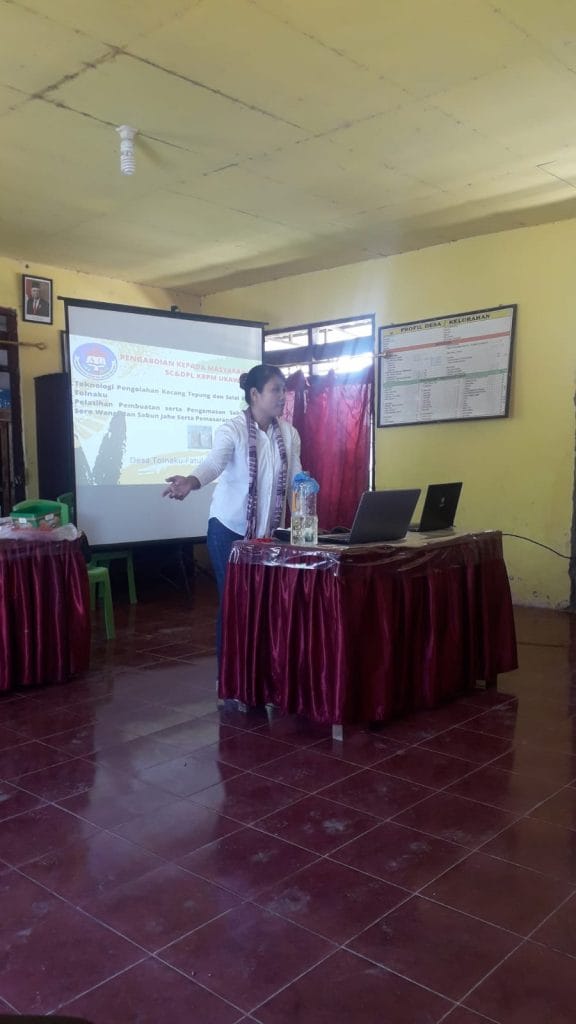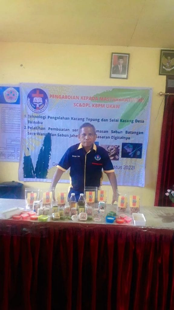 Pada Kegiatan Belajar dan Pendampingan Masyarakat Semester Genap Tahun Akademik 2021/2022 Dosen pendampingan Lapangan mendapatkan data bahwa Desa Tolnaku memiliki potensi di bidang Pertanian antara lain produksi kacang tanah, kelapa, jambu mete, daun serai. Dan jahe. Pada pihak lain masyarakat desa Tolnaku memiliki keterbatasan Ilmu Pengetahuan dan teknologi untuk melakukan pengolahan hasil pertanian tersebut. Atas dasar itulah dosen dan mahasiswa melakukan kegiatan pelatihan teknologi pengolahan Kacang Tepung Manis, Selai Kacang dan Sabun beraroma Serai dan jahe.