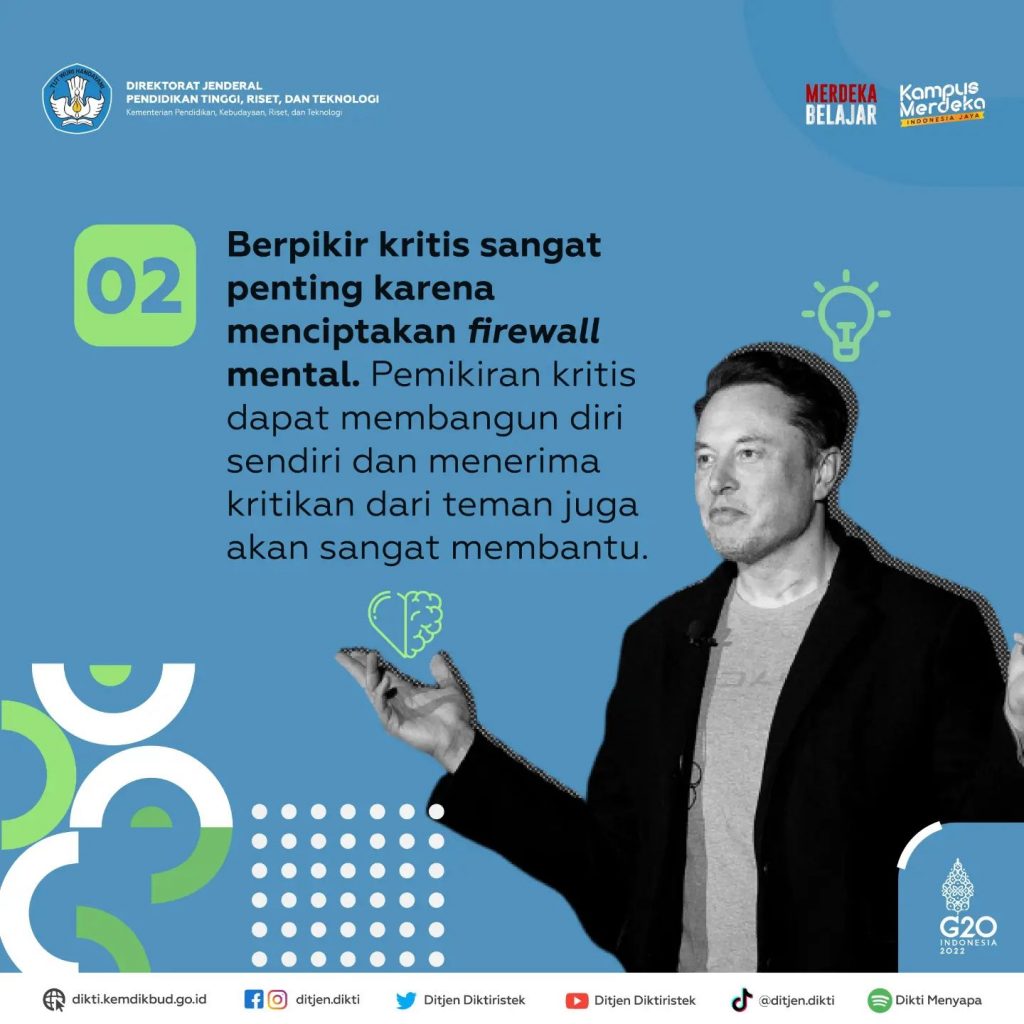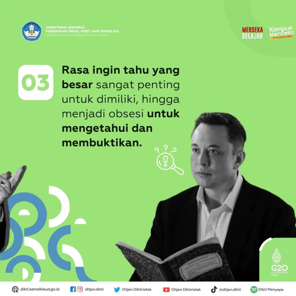 Elon Musk menyampaikan hal ini saat dialog virtual dengan Menteri Pendidikan, Kebudayaan, Riset, dan Teknologi, Nadiem Makarim, pada Forum Tri Hita Karana, Festival Kampus Merdeka di Bali, 14 November lalu.