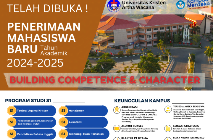Universitas Kristen Artha Wacana dengan bangga mengumumkan pembukaan pendaftaran mahasiswa baru untuk tahun akademik...