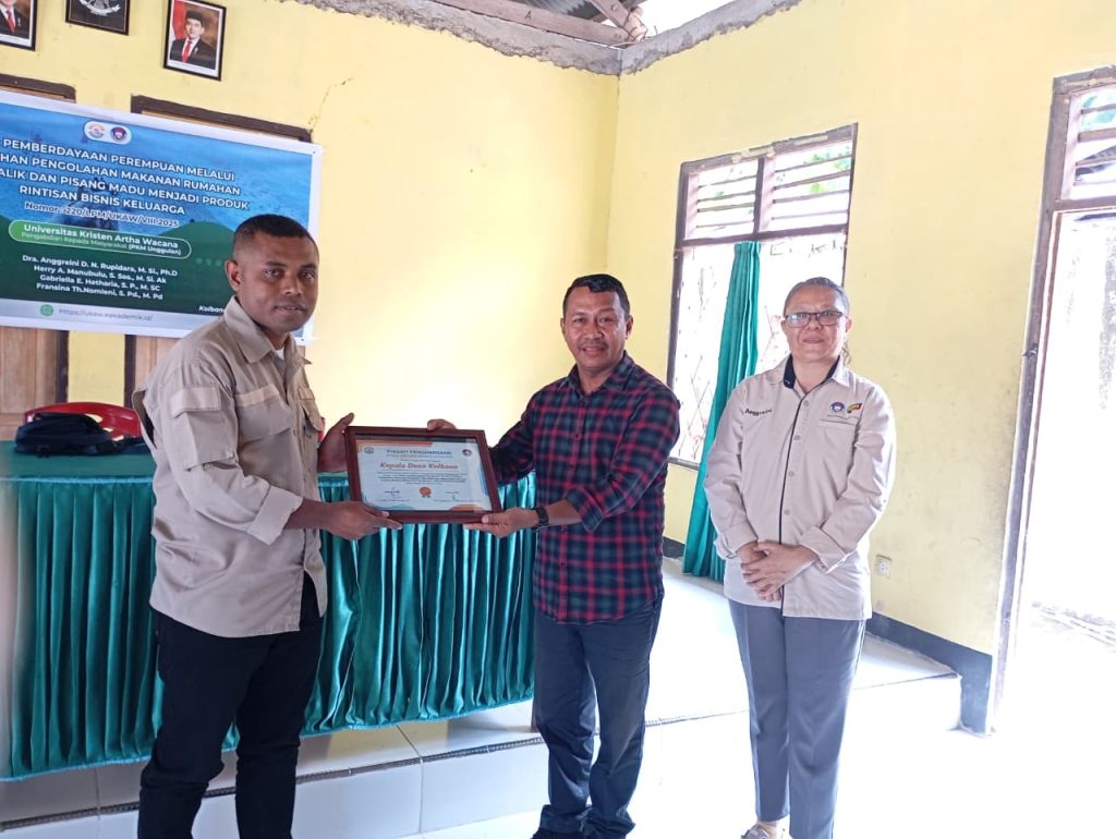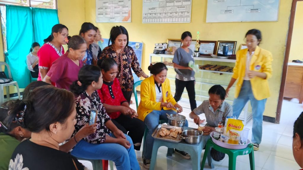 KUPANG, NTT – 28 Agustus 2025 – Universitas Kristen Artha Wacana (UKAW) Kupang melalui Lembaga Pengabdian kepada Masyarakat (LPM) sukses menyelenggarakan kegiatan PKM (Pengabdian Kepada Masyarakat) di Desa Kolbano. Mengusung tema “Pemberdayaan Perempuan Melalui Pelatihan Pengolahan Makanan Rumahan Tahu Walik dan Pisang Madu Menjadi Produk Rintisan Bisnis Keluarga”, kegiatan ini bertujuan untuk membuka peluang ekonomi baru bagi ibu-ibu rumah tangga dengan memanfaatkan potensi lokal.