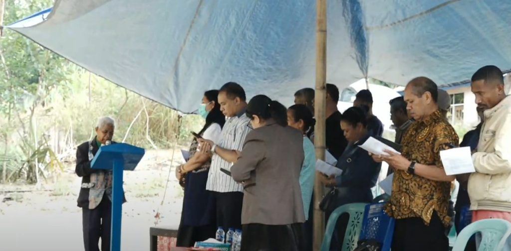 Acara yang bertajuk “Peresmian Rumah Bantuan UKAW @Tetaf TTS” ini diawali dengan ibadah syukur yang dipimpin oleh Pendeta Emeritus Agustinus Kause, S.Th. Dalam khotbahnya, ia menegaskan pentingnya mengandalkan Tuhan dalam setiap usaha, sebagaimana tertulis dalam Mazmur 127:1b — “Jikalau bukan Tuhan yang membangun rumah, sia-sialah usaha orang yang membangunnya.”
