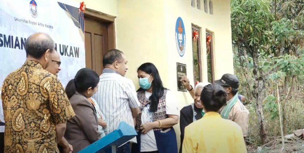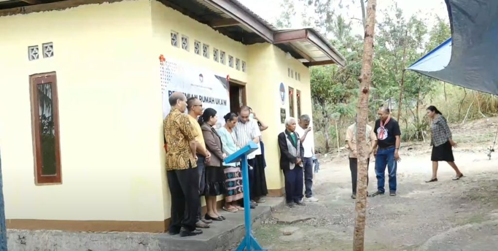 Sebagai tanda peresmian, Rektor UKAW bersama istri melakukan pengguntingan pita dan penyerahan kunci rumah secara simbolis kepada Mama Lasboi, disaksikan oleh para pendeta, pimpinan gereja, dan masyarakat setempat. Acara kemudian dilanjutkan dengan foto bersama di dalam rumah baru serta doa penutup dan berkat bagi penerima bantuan.