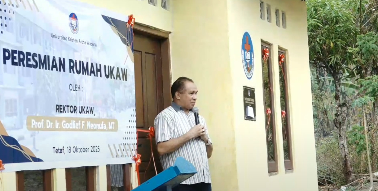 TTS, 18 Oktober 2025 — Suasana sukacita menyelimuti tenda acara di Desa Tetaf, Kabupaten Timor Tengah Selatan (TTS), saat Universitas Kristen Artha Wacana (UKAW) Kupang secara resmi menyerahkan satu unit rumah bantuan kepada Mama Lasboi, seorang warga yang selama ini berjuang untuk memiliki tempat tinggal layak huni.