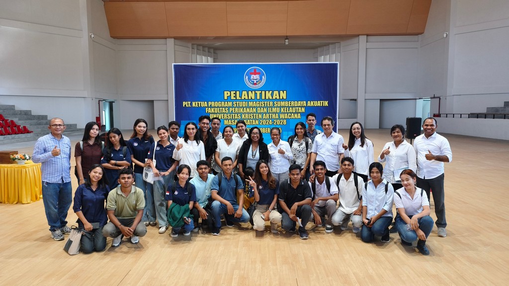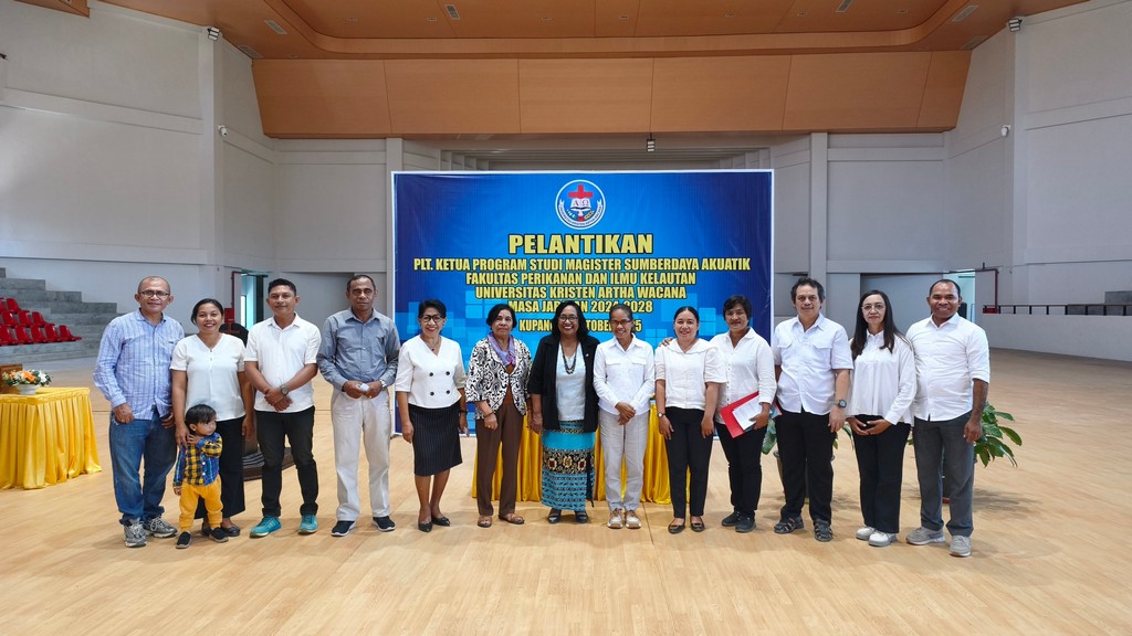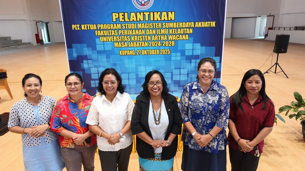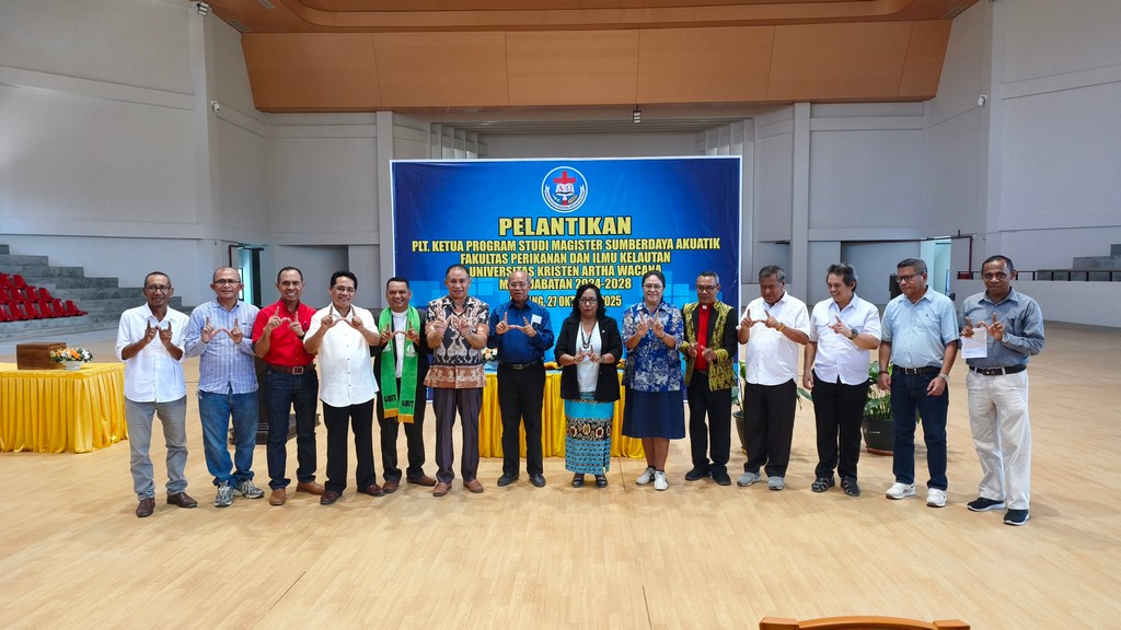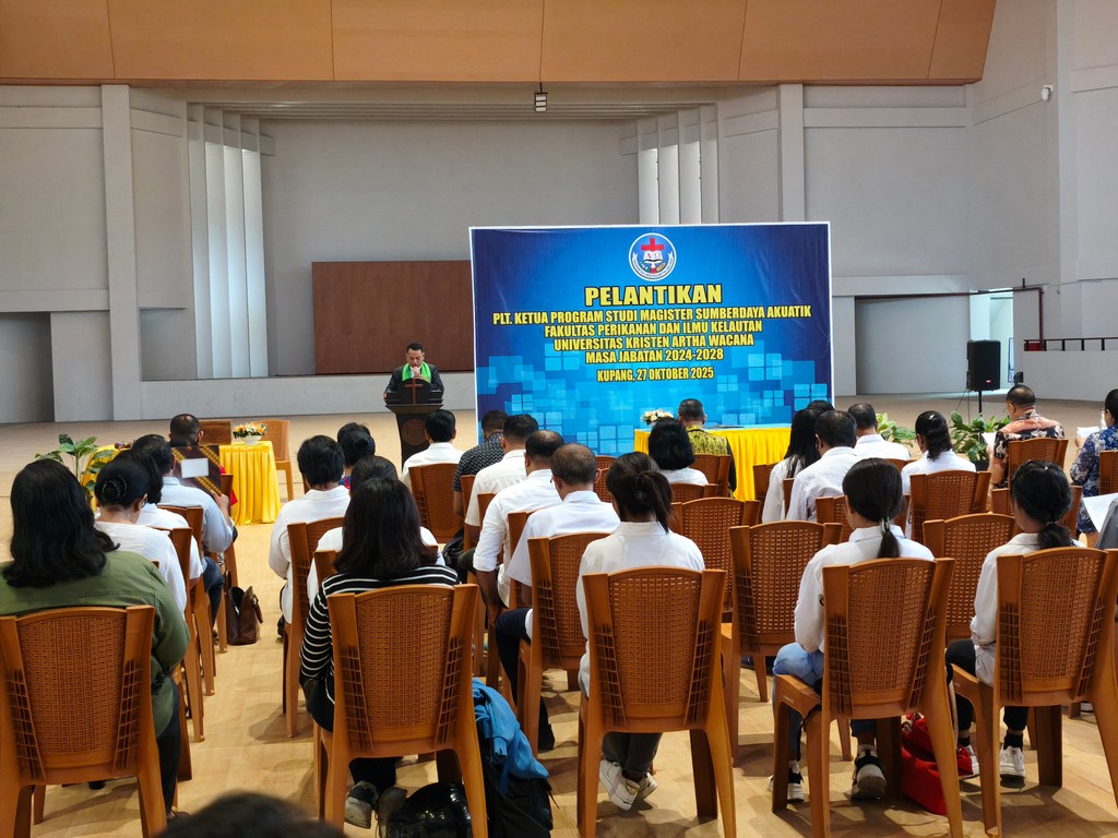 KUPANG, SENIN, 27 OKTOBER 2025 – Universitas Kristen Artha Wacana (UKAW) mengadakan prosesi pelantikan Pejabat Pelaksana Tugas (PLT) Ketua Program Studi Magister Akuatik Fakultas Perikanan & Ilmu Kelautan (FPIK) dalam liturgi Kebaktian Senin Kampus, bertempat di Gedung Bahtera Artha Wacana, Senin (27/10/2025).
